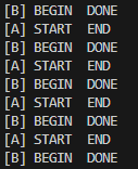 タスクAとタスクBが、それぞれ以下を出すとします。