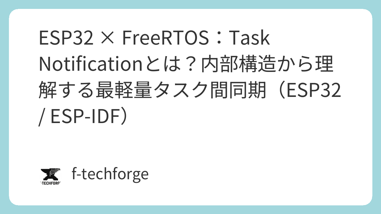 FreeRTOS の Task Notification(タスク通知) は、1 対 1 のタスク同期をシンプルに実現するための最軽量機構です。本質的には「あるタスクにイベントを送信し、待っているタスクを起床させる」ための仕組みになります。